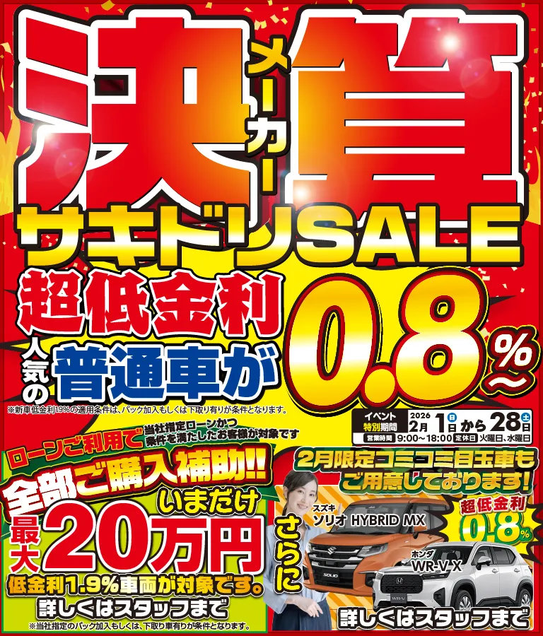 金利が安く同時に2台購入しました。 担当の方も親身に相談乗って頂きました!